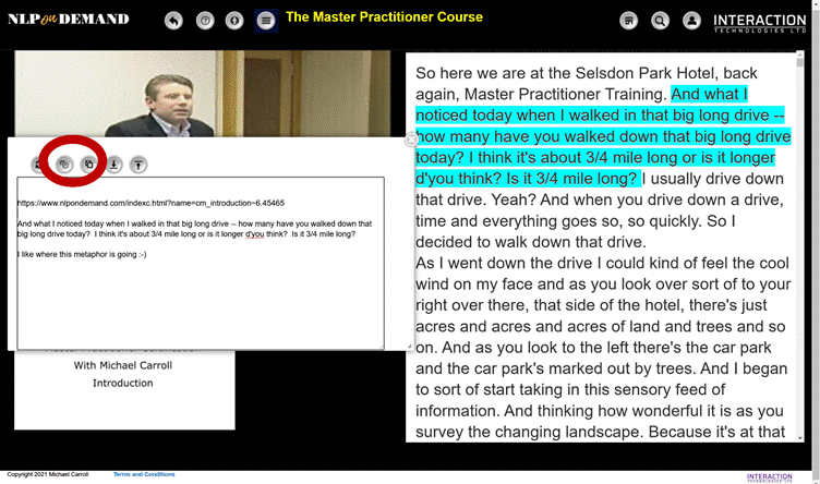 You can also use the nearby “COPY CURRENT INFO” icon to copy the current time in the recording and text from the transcript to your clipboard.